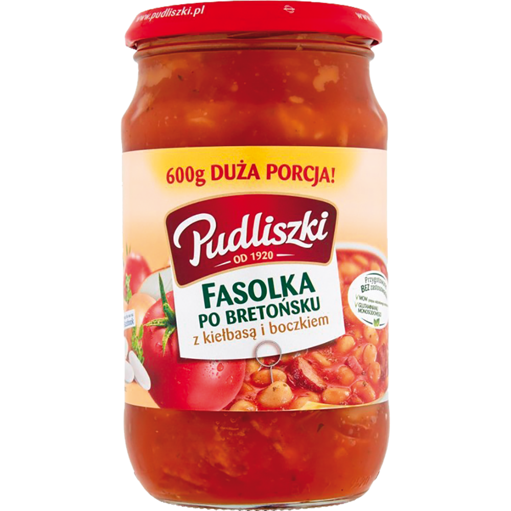PUDLISZKI FASOLKA PO BRETONSKU Z KIELBASA I BOCZKIEM SLOIK 610G